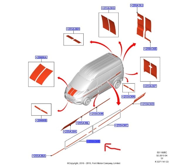 KALKOMANIA NAKLEJKA PAS LEWA STRONA TRANSIT/TOURNEO CUSTOM 2012- JK2J-291C53-BC 2311368